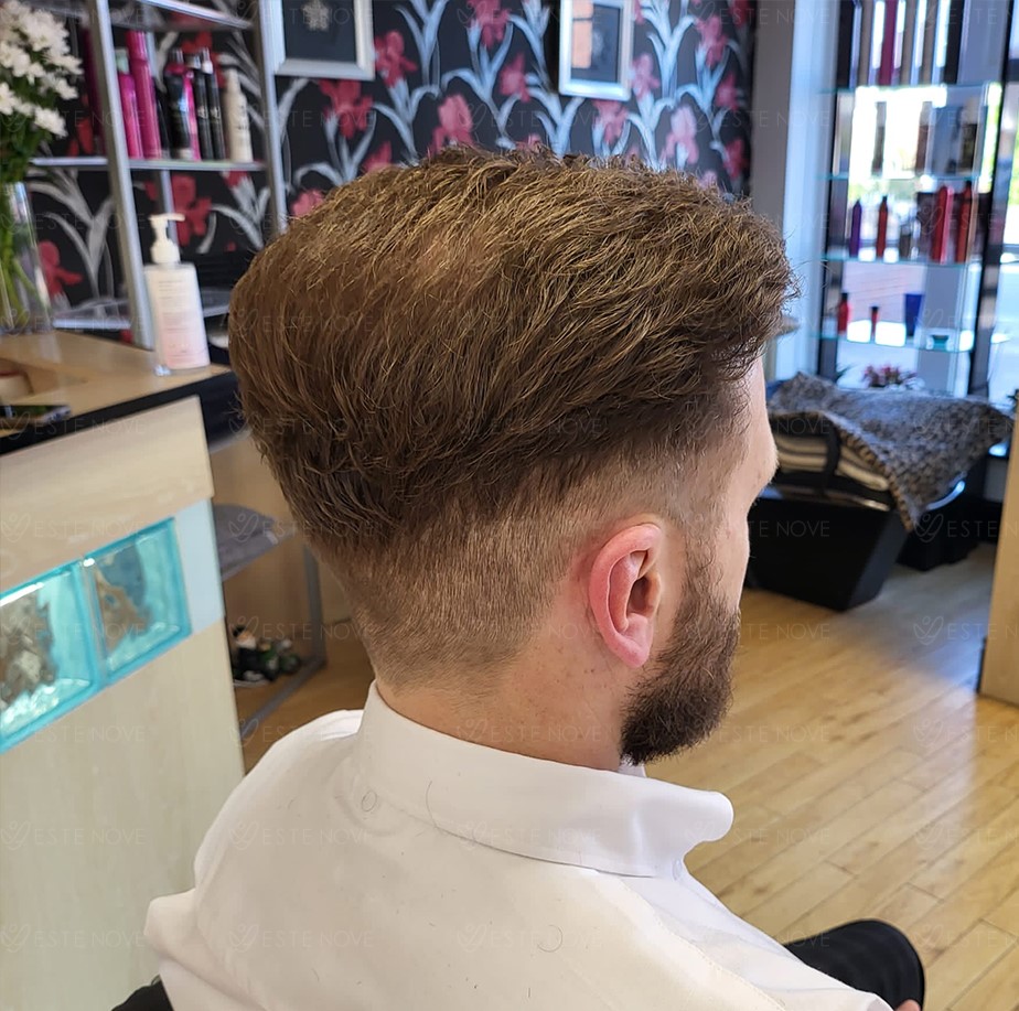 Front view of a man with thick and dense hair strands, displaying high hair density. Back view showing full coverage and compact follicle distribution characteristic of high density.